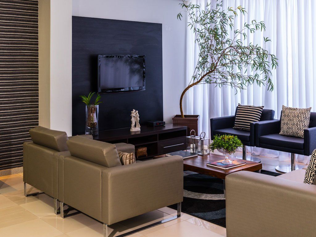 Junto con la recepción, la Sala de TV mantiene el ambiente de integración entre huéspedes, empleados y el hotel, brindando networking y un completo programa de TV por cable.
